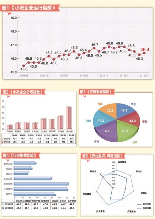 2018年8月份,“經(jīng)濟(jì)日報-中國郵政儲蓄銀行小微企業(yè)運(yùn)行指數(shù)”(見圖1)為46.4,較上月上升0.1個點(diǎn),本月小微企業(yè)運(yùn)行有所回升。 從各分項指標(biāo)指數(shù)(見圖2)來看,呈現(xiàn)“六升兩降”態(tài)勢。其中,市場指數(shù)為43.5,上升0.1個點(diǎn);采購指數(shù)為45.8,上升0.2個...