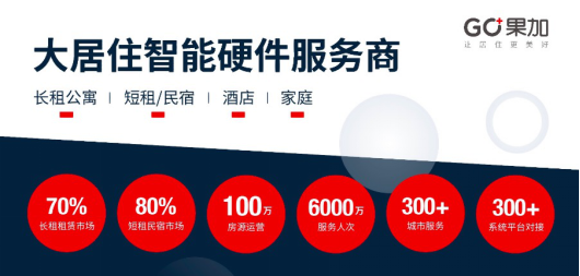 經(jīng)過5年發(fā)展,果加以智能門鎖為中心,業(yè)務(wù)已覆蓋包括長(zhǎng)租公寓、短租民宿、酒店等在內(nèi)的商用居住和家用居住全場(chǎng)景。
