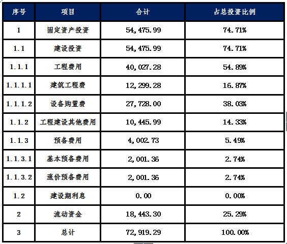 項(xiàng)目總投資估算為72,919.29萬(wàn)元。