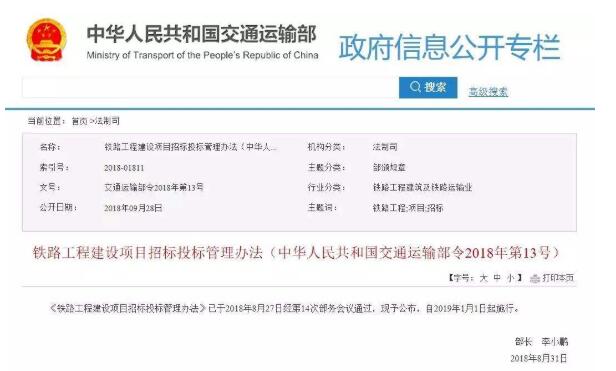 為規(guī)范鐵路工程建設(shè)項目招標(biāo)投標(biāo)活動,維護(hù)國家利益、社會公共利益和招標(biāo)投標(biāo)活動當(dāng)事人的合法權(quán)益,我們制定了《鐵路工程建設(shè)項目招標(biāo)投標(biāo)管理辦法》(交通運輸部令2018年第13號)。...