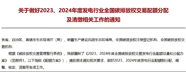 為切實(shí)做好全國(guó)碳排放權(quán)交易市場(chǎng)(以下簡(jiǎn)稱強(qiáng)制碳市場(chǎng))2023、2024年度發(fā)電行業(yè)配額分配相關(guān)工作,根據(jù)《碳排放權(quán)交易管理暫行條例》,在廣泛征求社會(huì)各方意見的基礎(chǔ)上,生態(tài)環(huán)境部印發(fā)實(shí)施了《2023、2024年度全國(guó)碳排放權(quán)交易發(fā)電行業(yè)配額總量和分...