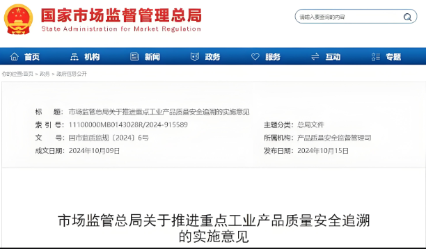 近日,市場監(jiān)管總局發(fā)布了《關(guān)于推進(jìn)重點(diǎn)工業(yè)產(chǎn)品質(zhì)量安全追溯的實(shí)施意見》(以下簡稱《實(shí)施意見》)。...