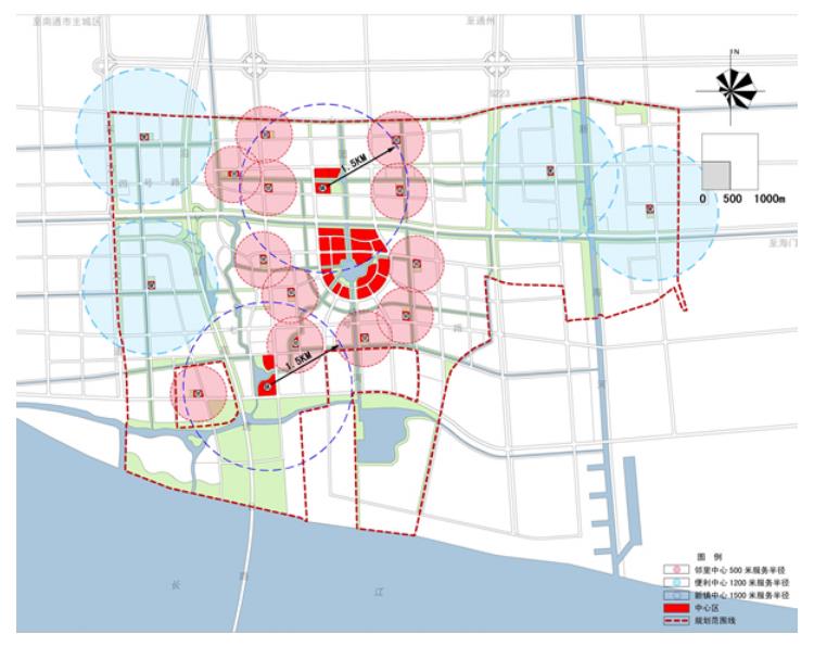 區(qū)域中心:位于基地中心位置,占地規(guī)模約150公頃,服務(wù)于包括基地在內(nèi)的南通都市區(qū)南翼地區(qū),同時(shí)具備服務(wù)更大范圍區(qū)域性商務(wù)中心的功能,區(qū)域中心設(shè)置零售/餐飲、辦公、金融、文化娛樂、會(huì)展、政府辦公、酒店、公寓、公園、公交換乘樞紐等設(shè)施。