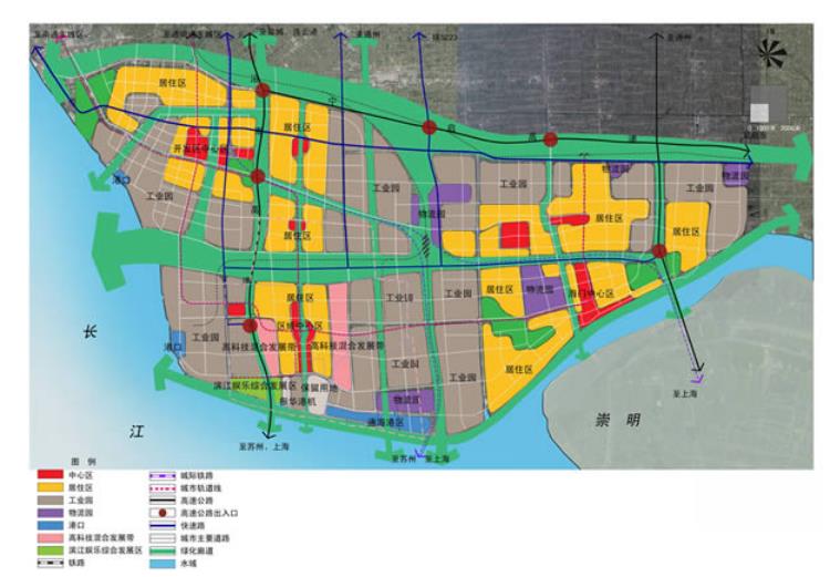 二期開發(fā)主要開發(fā)東部工業(yè)區(qū)和北部居住區(qū),以及蘇通大橋以西濱江娛樂綜合發(fā)展區(qū)等,結(jié)合新江海河布置重裝備工業(yè)區(qū)、東部科技綜合發(fā)展區(qū)、商務(wù)園、教育園、配套居住區(qū)等,面積為29.68平方公里。