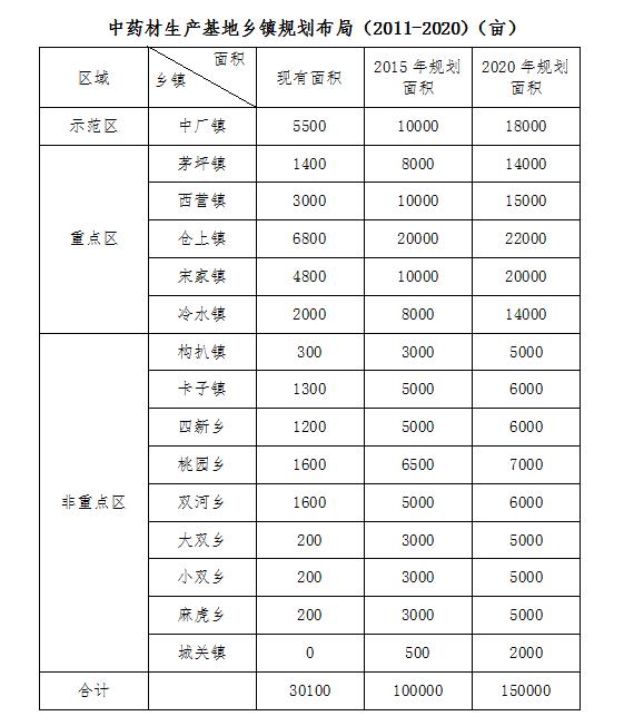 規(guī)劃全縣中藥材產(chǎn)業(yè)的發(fā)展將采用“示范帶動、板塊推進(jìn)、全面發(fā)展”的模式,建立1個標(biāo)準(zhǔn)化示范區(qū),建設(shè)5個重點區(qū)域,9個非重點區(qū)域。