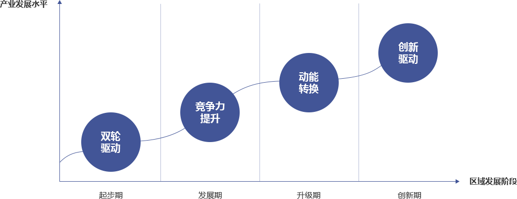 | 升級期 | 東部二線地區(qū)及中西部大城市,區(qū)位條件好,交通網(wǎng)絡發(fā)達,常常能充分接受中心城市的輻射; 經(jīng)濟總量較大,重點行業(yè)的產(chǎn)業(yè)鏈完整,產(chǎn)業(yè)集群競爭力強,高端服務業(yè)、高科技產(chǎn)業(yè)穩(wěn)步發(fā)展; 主要問題:產(chǎn)業(yè)結構偏傳統(tǒng),新興產(chǎn)業(yè)、高科技產(chǎn)業(yè)比重不高,自主創(chuàng)新能力弱; 發(fā)展重點:提升舊動能,導入新動能,培育創(chuàng)新力,促進產(chǎn)業(yè)融合發(fā)展。 |