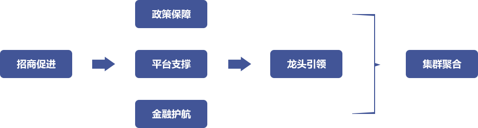 產(chǎn)業(yè)競爭力提升戰(zhàn)略 —— 提升產(chǎn)業(yè)競爭力六步法:招商促進、政策保障、平臺支撐、金融護航、龍頭引領、集群聚合。