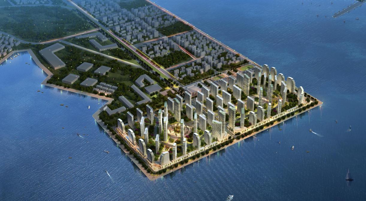 基地三面環(huán)海,南側不鳳凰島西半島山體遙遙相望,西側鄰近大澗山山體景觀,坐擁山海,自然景觀資源豐富?;貙⒊蔀槲磥砬鄭u主城區(qū)、