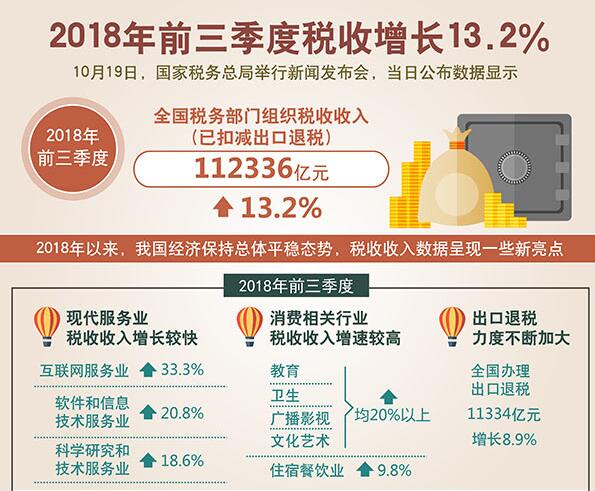 10月22日,國家稅務總局日前發(fā)布的數(shù)據(jù)顯示,今年前三季度,全國稅務部門組織稅收收入(已扣減出口退稅)112336億元,增長13.2%,其中,第三季度增長8%,比二季度增速回落5.1個百分點,體現(xiàn)出我國一系列減稅降負措施成效不斷顯現(xiàn)。...