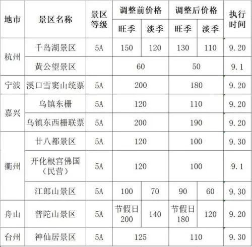 浙江?。?/span>8個5A景區(qū)降價 普遍下降10~20元。