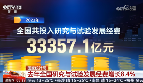 國家統(tǒng)計局、科學技術部和財政部2日聯(lián)合發(fā)布的《2023年全國科技經(jīng)費投入統(tǒng)計公報》顯示,2023年我國研究與試驗發(fā)展(R&D)經(jīng)費投入總量為33357.1億元,比上年增長8.4%,保持穩(wěn)定增長趨勢。...