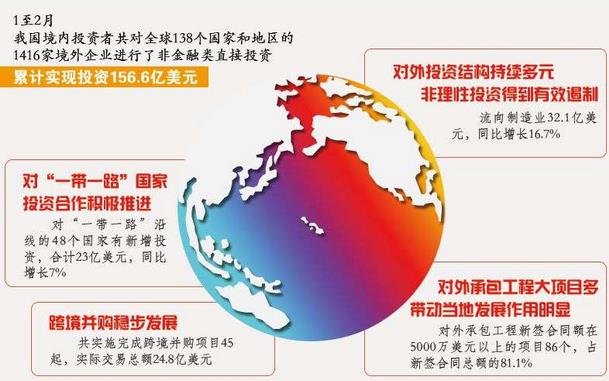 商務(wù)部近日公布的數(shù)據(jù)顯示,2019年前兩個(gè)月,我國對(duì)外非金融類直接投資累計(jì)實(shí)現(xiàn)投資156.6億美元,對(duì)外投資合作平穩(wěn)健康發(fā)展。...