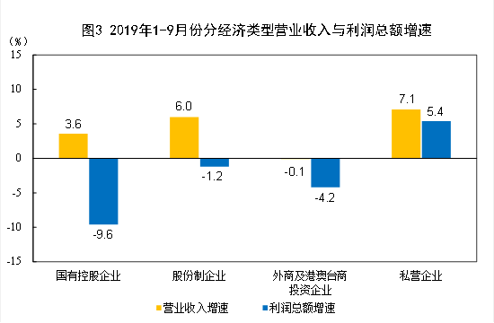 1—9月份,規(guī)模以上工業(yè)企業(yè)中,國有控股企業(yè)實(shí)現(xiàn)利潤(rùn)總額13892.7億元,同比下降9.6%;股份制企業(yè)實(shí)現(xiàn)利潤(rùn)總額33721.4億元,下降1.2%;外商及港澳臺(tái)商投資企業(yè)實(shí)現(xiàn)利潤(rùn)總額11341.9億元,下降4.2%;私營(yíng)企業(yè)實(shí)現(xiàn)利潤(rùn)總額12631.6億元,增長(zhǎng)5.4%。
